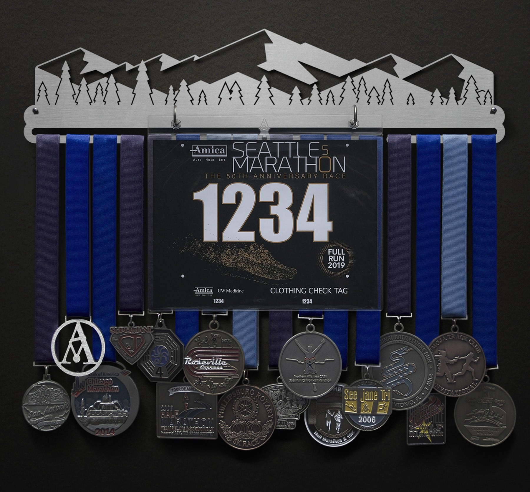 Mountain Scene - Stylized Version Bib and Medal Display