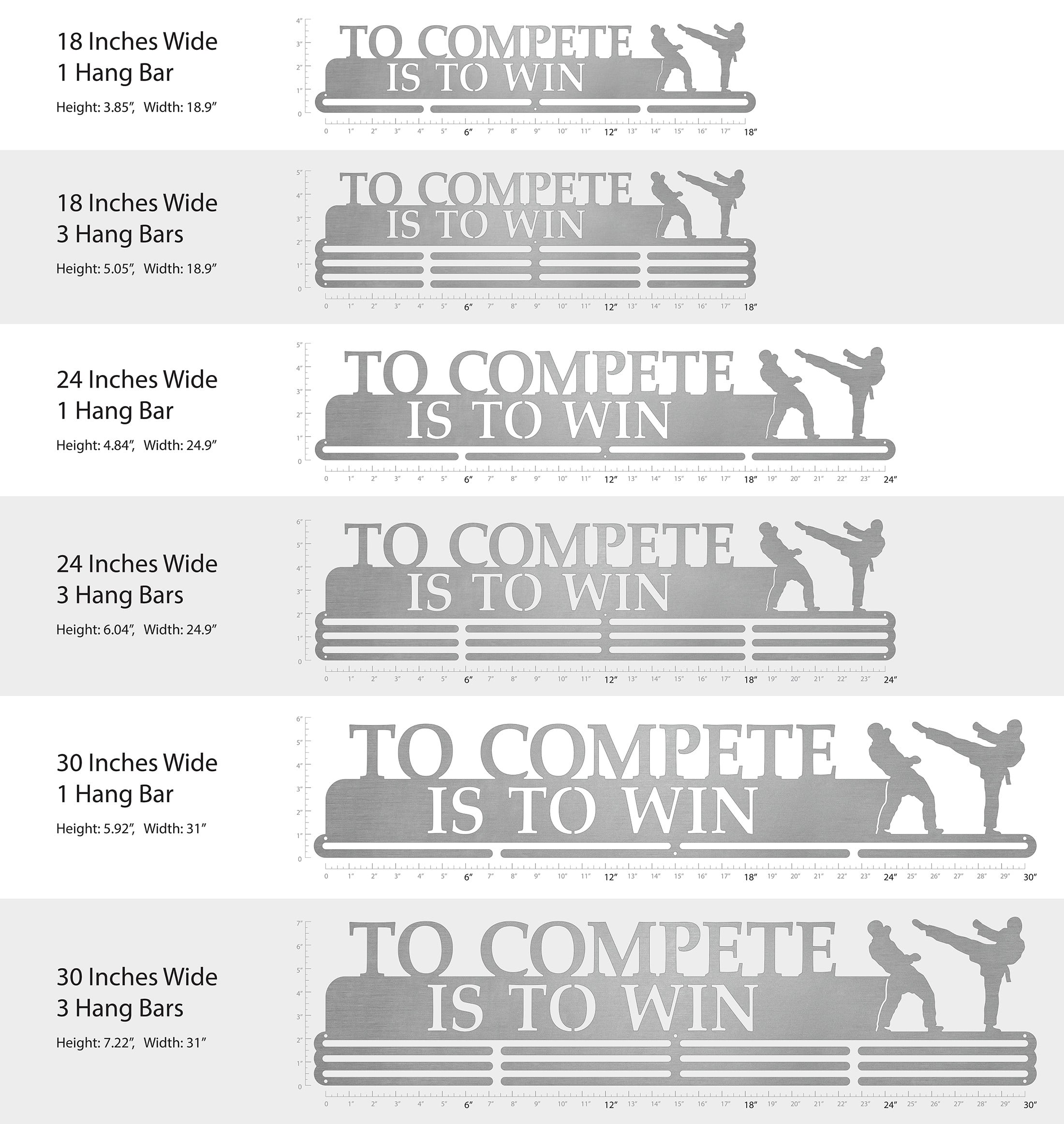 Unsure what size to get? We have created two consistently scaled images to show you what different sized displays look like when filled with medals.