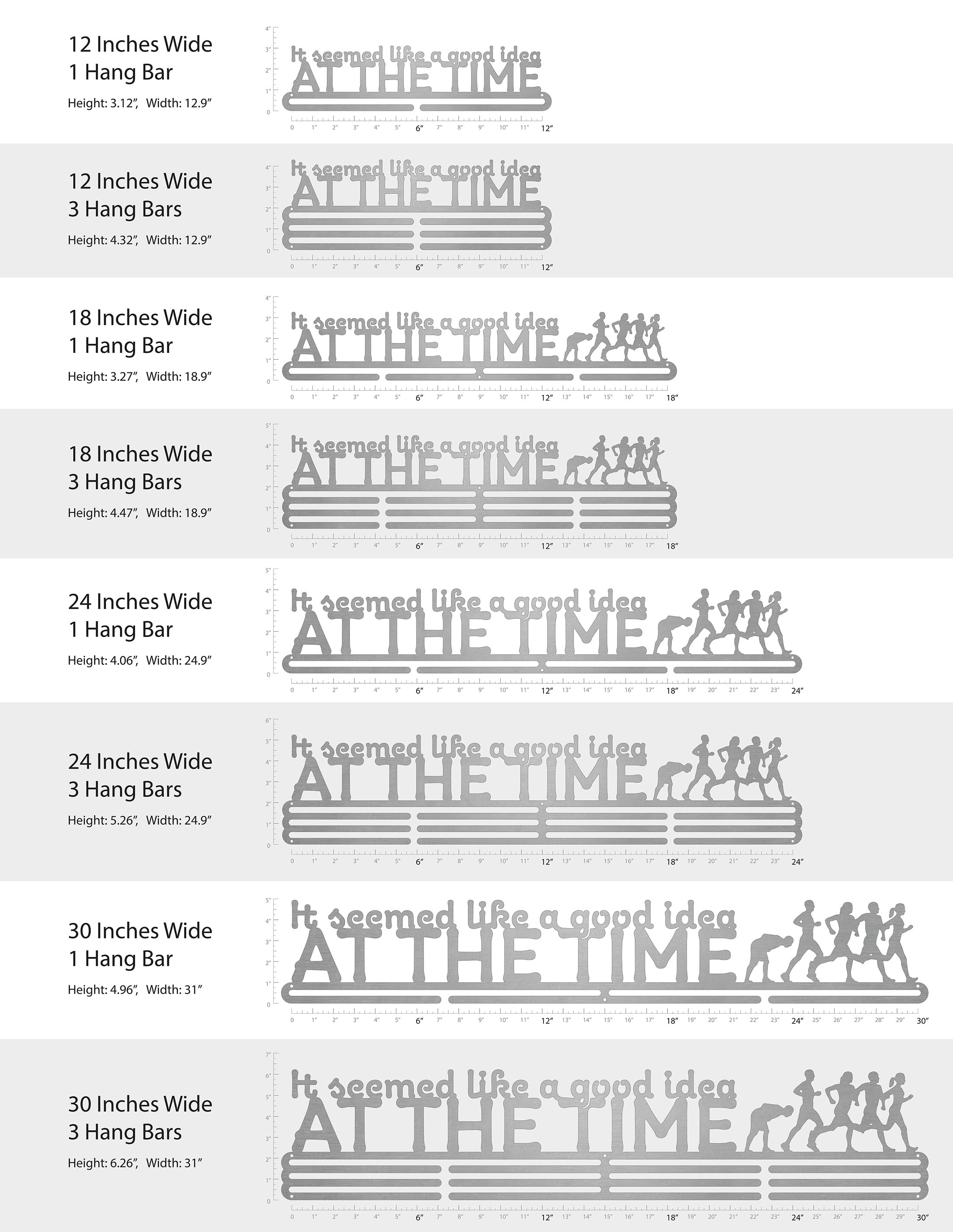 Unsure what size to get? We have created two consistently scaled images to show you what different sized displays look like when filled with medals.