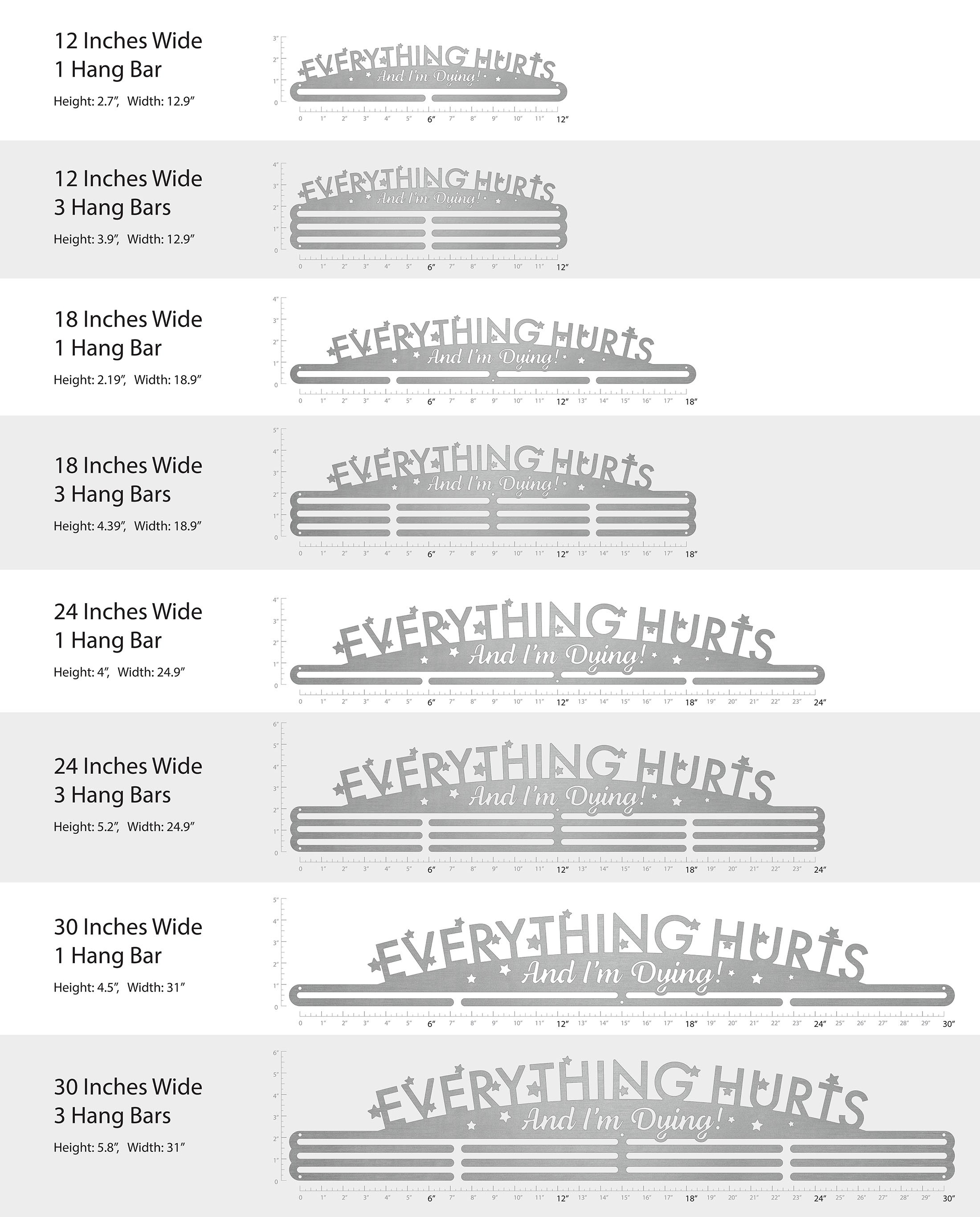 Unsure what size to get? We have created two consistently scaled images to show you what different sized displays look like when filled with medals.