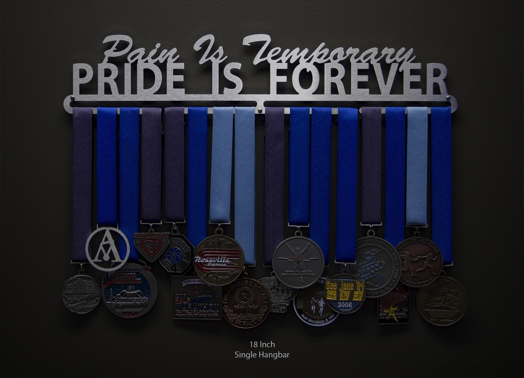 The blood, sweat, and tears shed from your amazing triumphs will eventually fade, while your pride and glory from such feats will last forever. This laser cut brushed stainless steel medal display is meant to symbolize your determination in a stylish way.