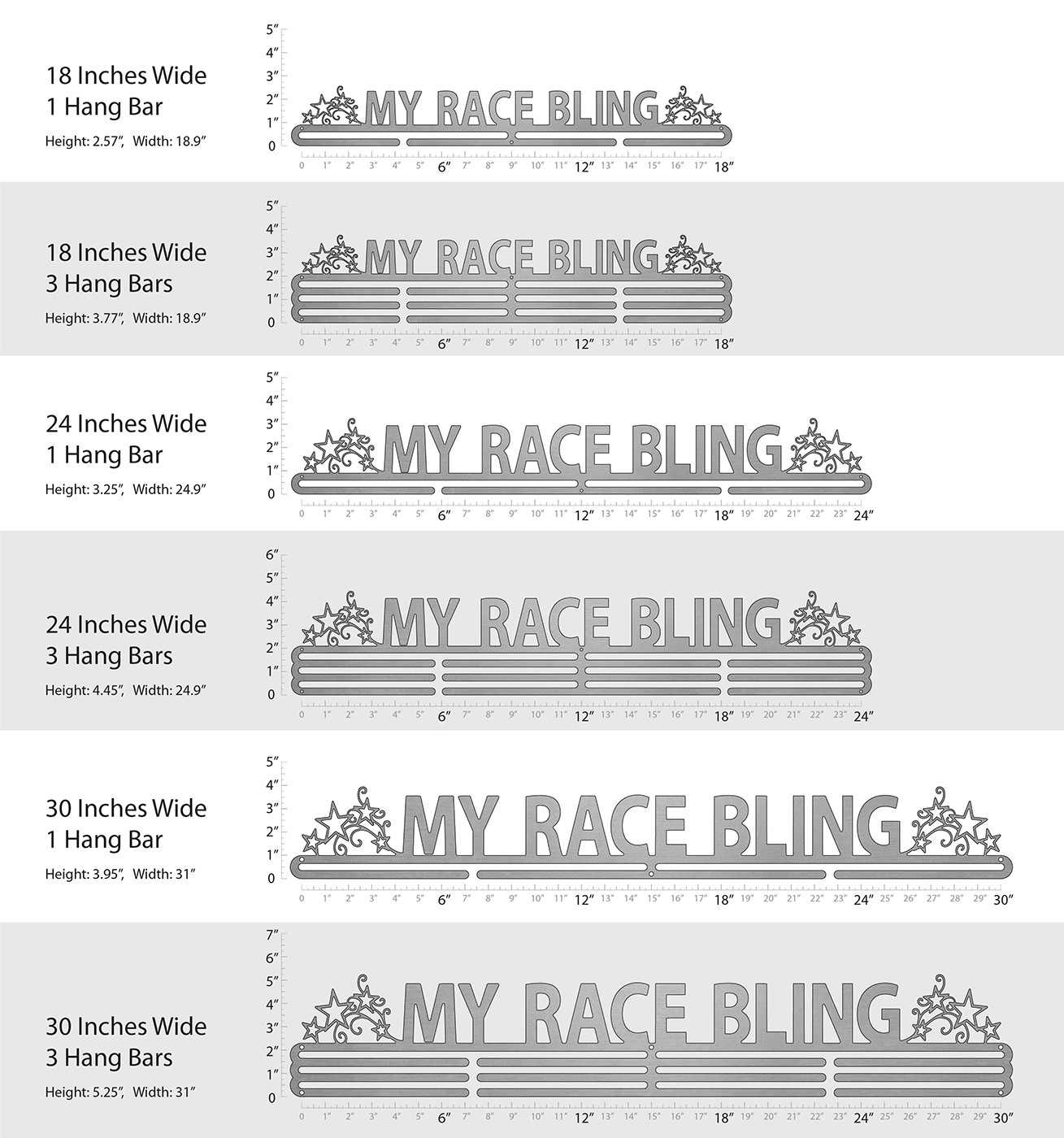 Unsure what size to get? We have created two consistently scaled images to show you what different sized displays look like when filled with medals.