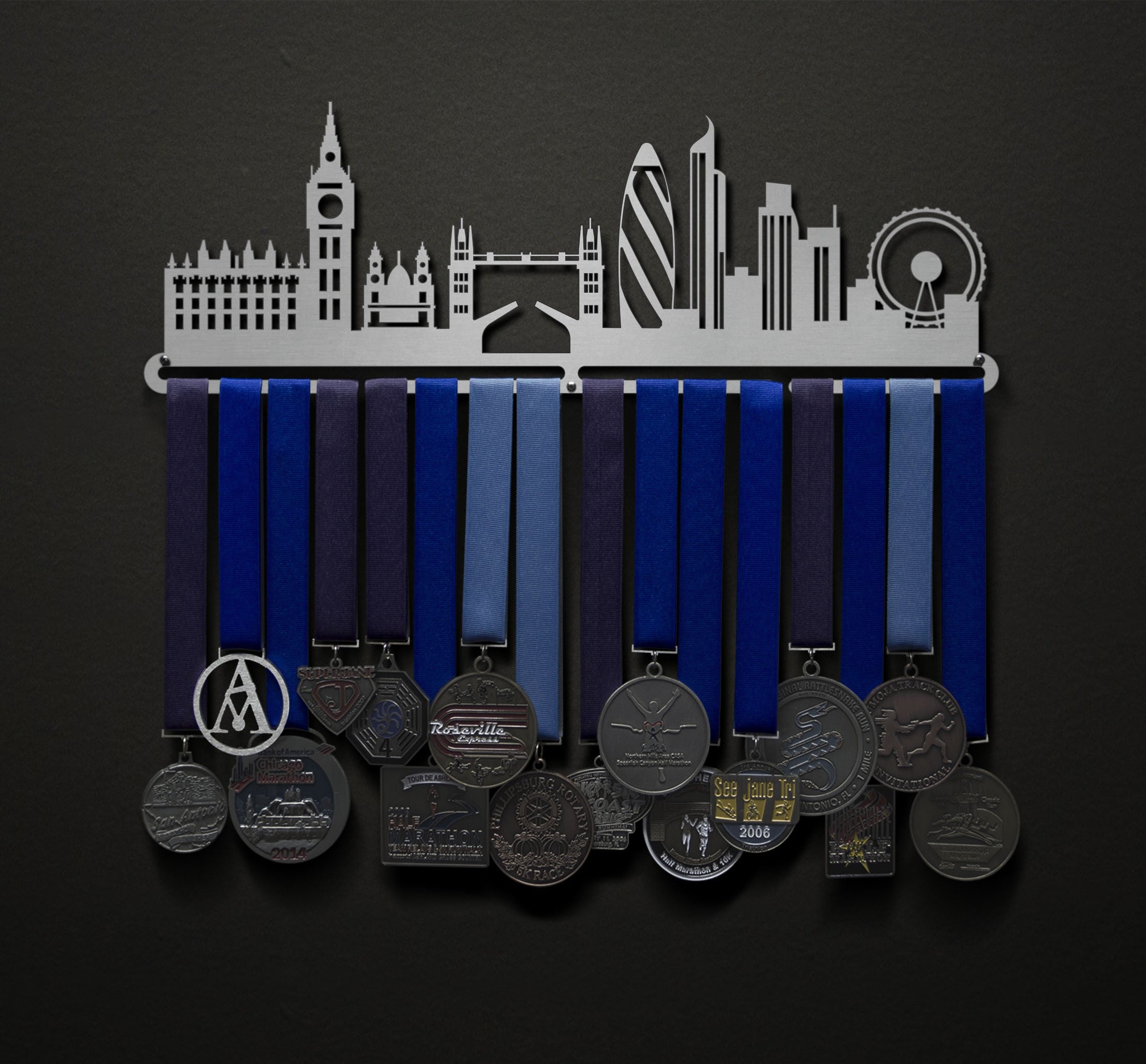 Unsure what size to get? We have created two consistently scaled images to show you what different sized displays look like when filled with medals.