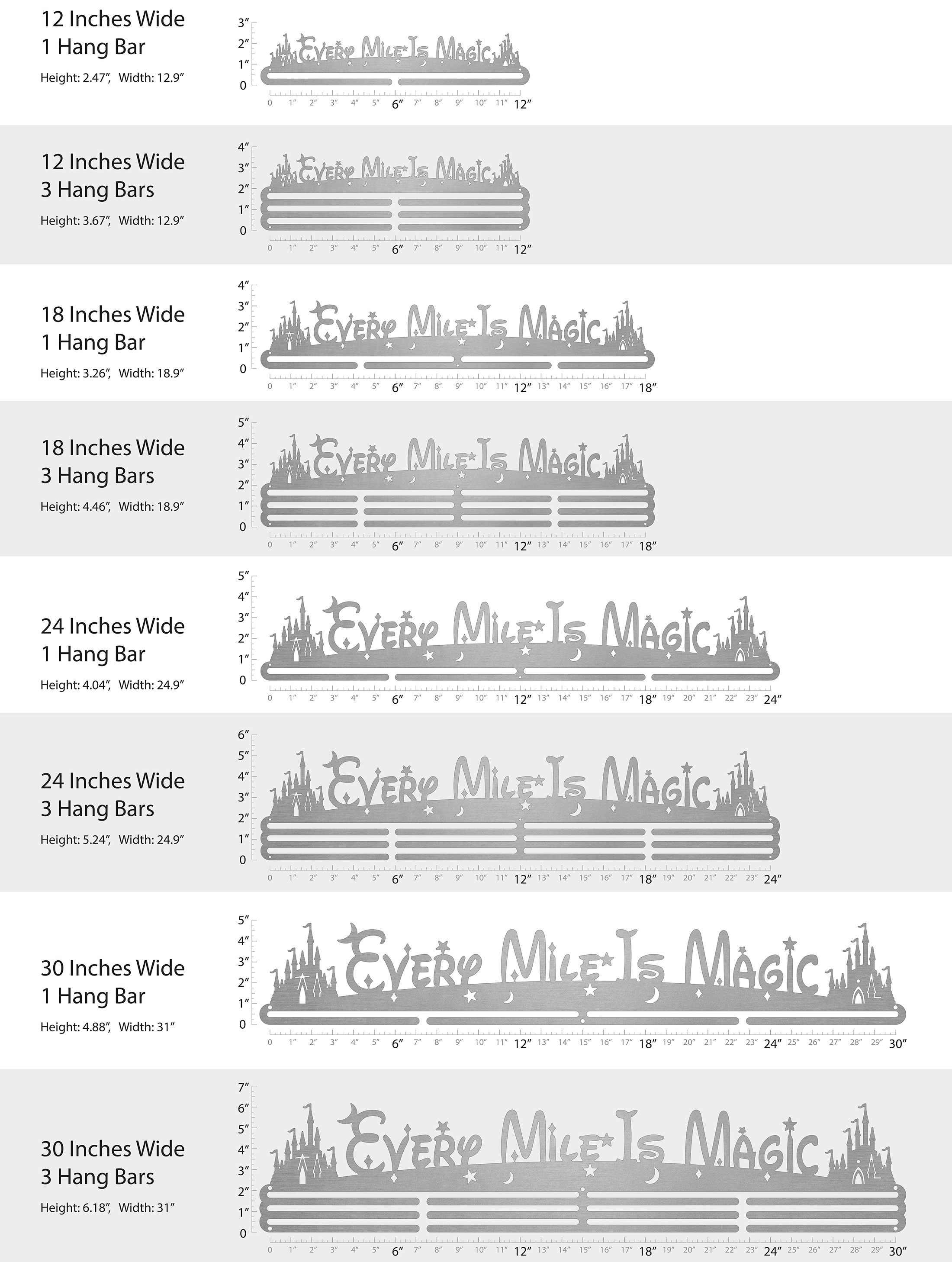 Unsure what size to get? We have created two consistently scaled images to show you what different sized displays look like when filled with medals.