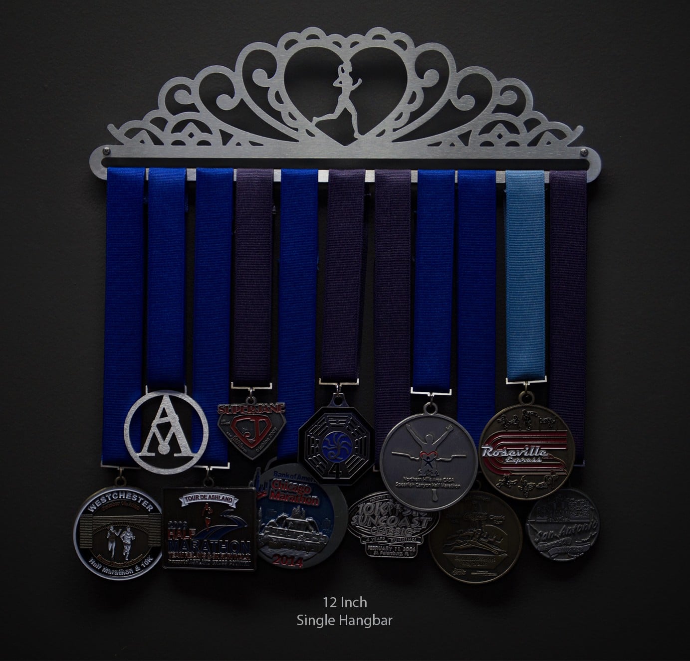 A medal hanger designed specifically with running princesses in mind. Whether you run 5Ks, 10Ks, 13.1, 26.2, 70.3, 140.6 or beyond, this display is perfect for exhibiting your remarkable accomplishments. You earned them, now display them with pride!