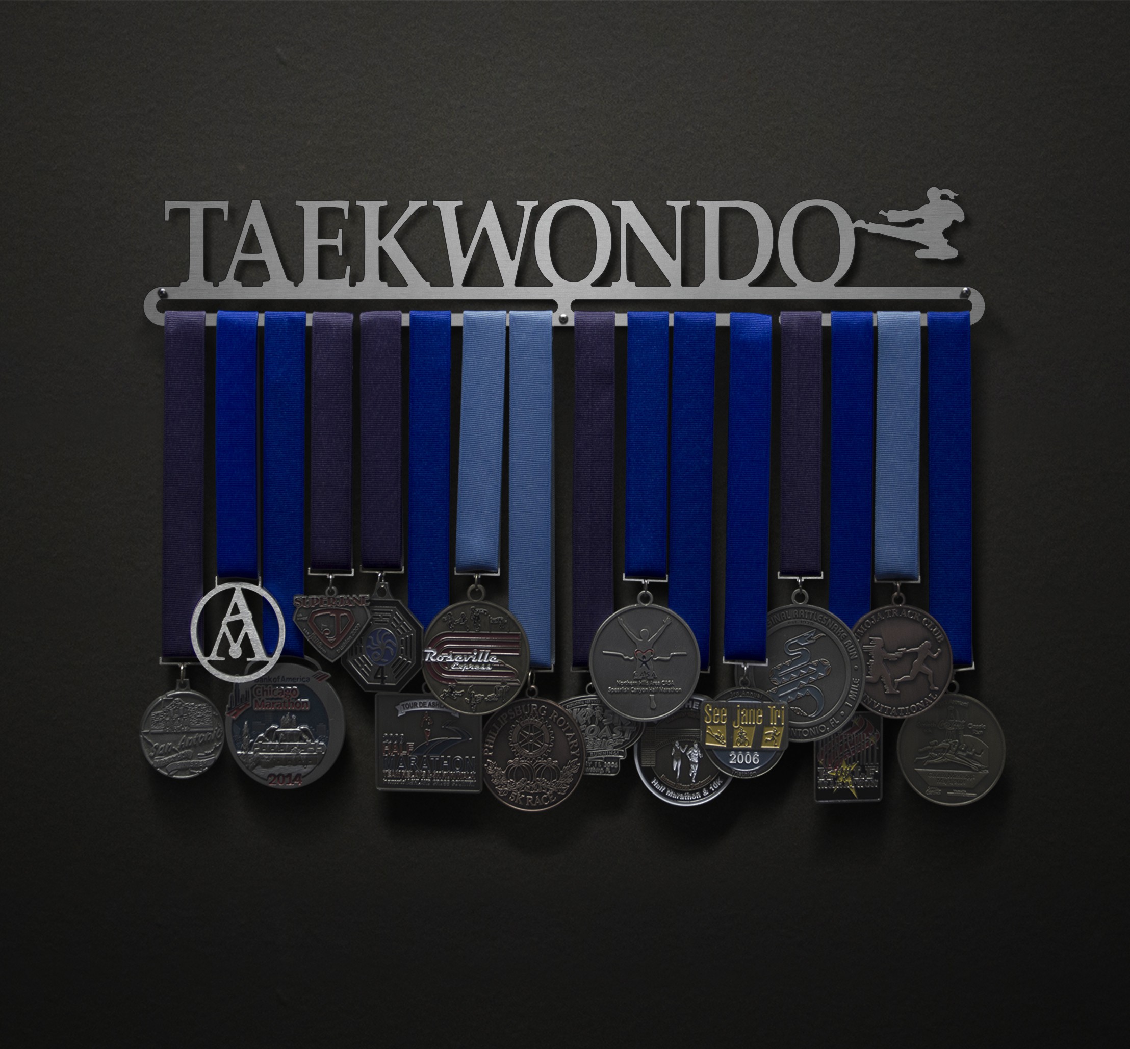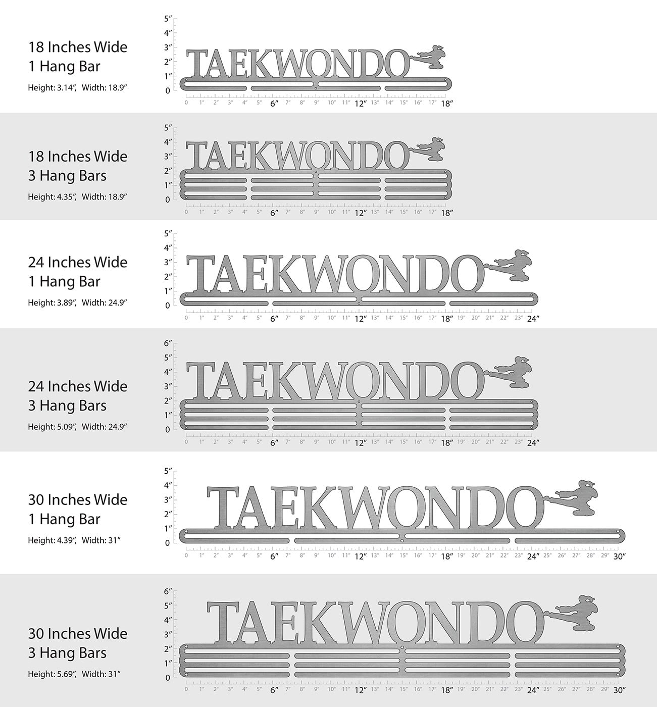Unsure what size to get? We have created two consistently scaled images to show you what different sized displays look like when filled with medals.
