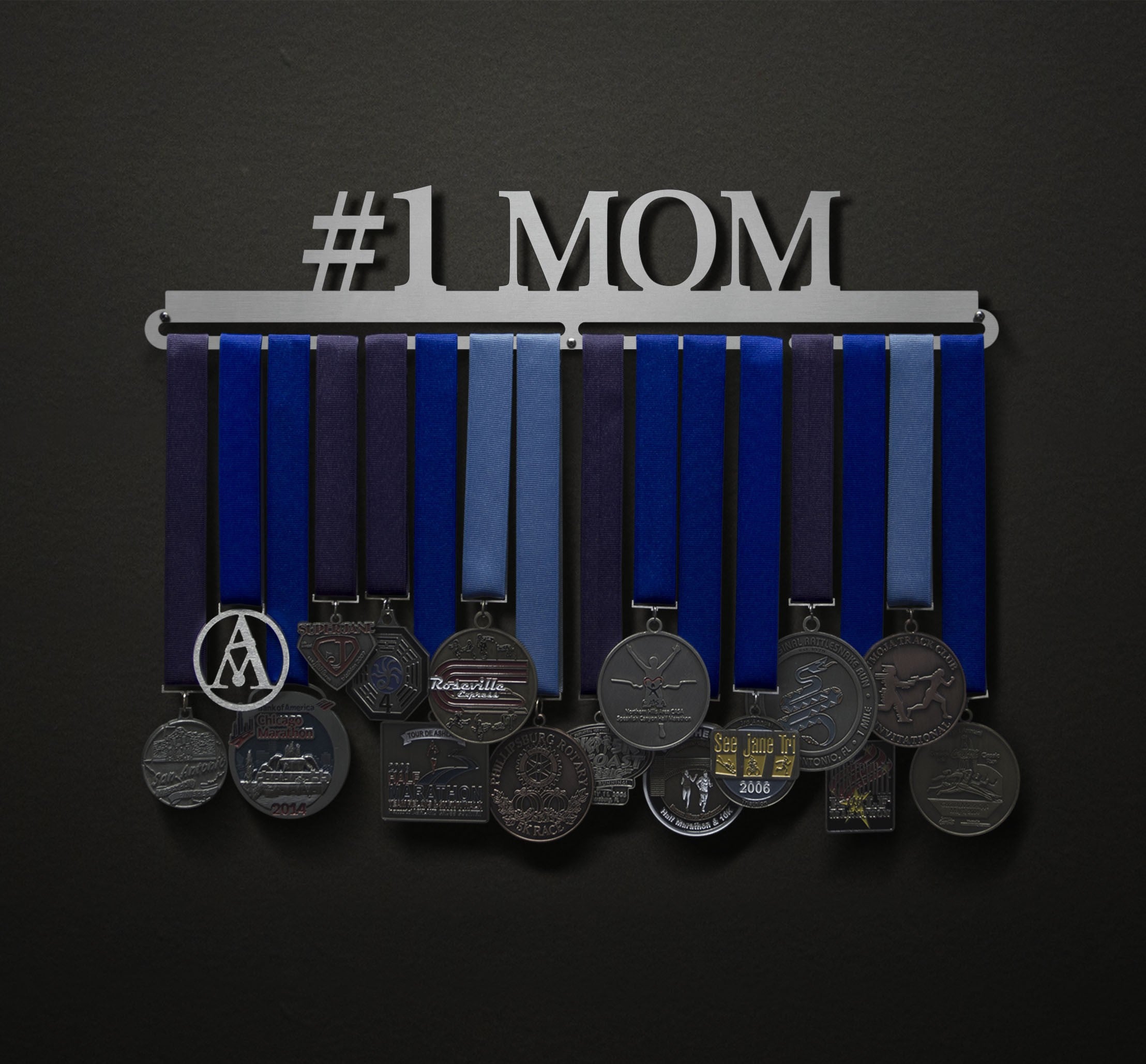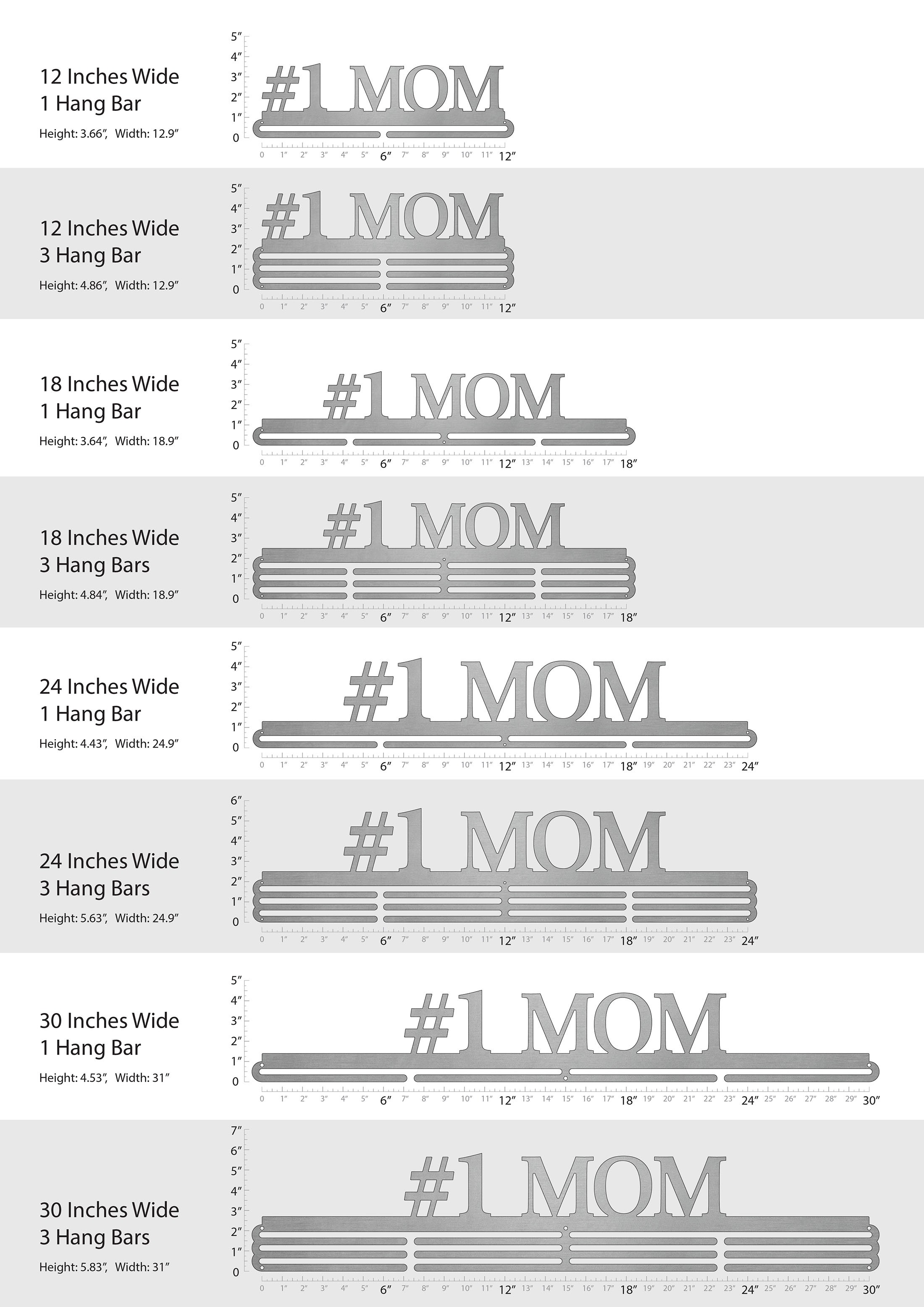 Unsure what size to get? We have created two consistently scaled images to show you what different sized displays look like when filled with medals.