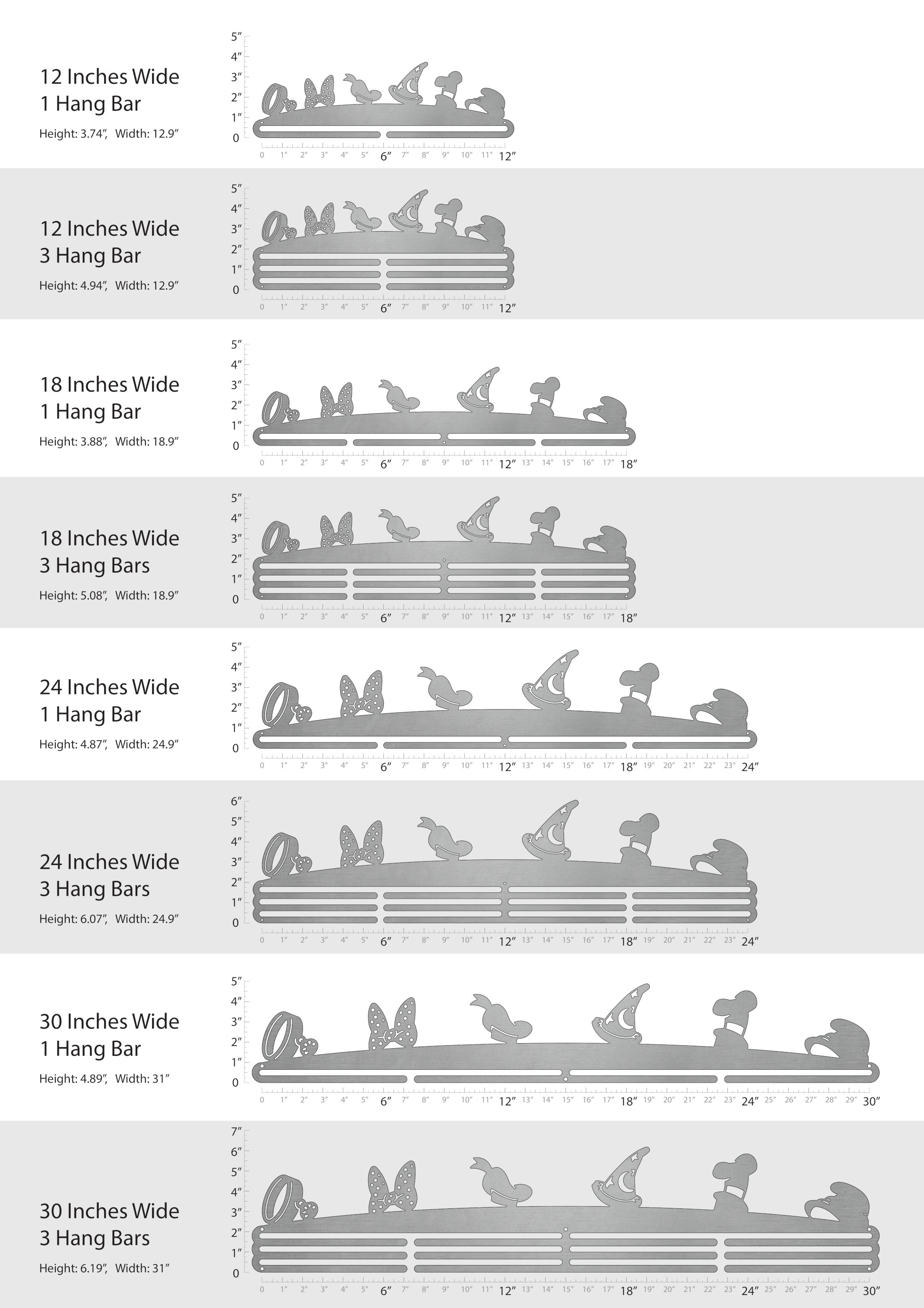 Unsure what size to get? We have created two consistently scaled images to show you what different sized displays look like when filled with medals.