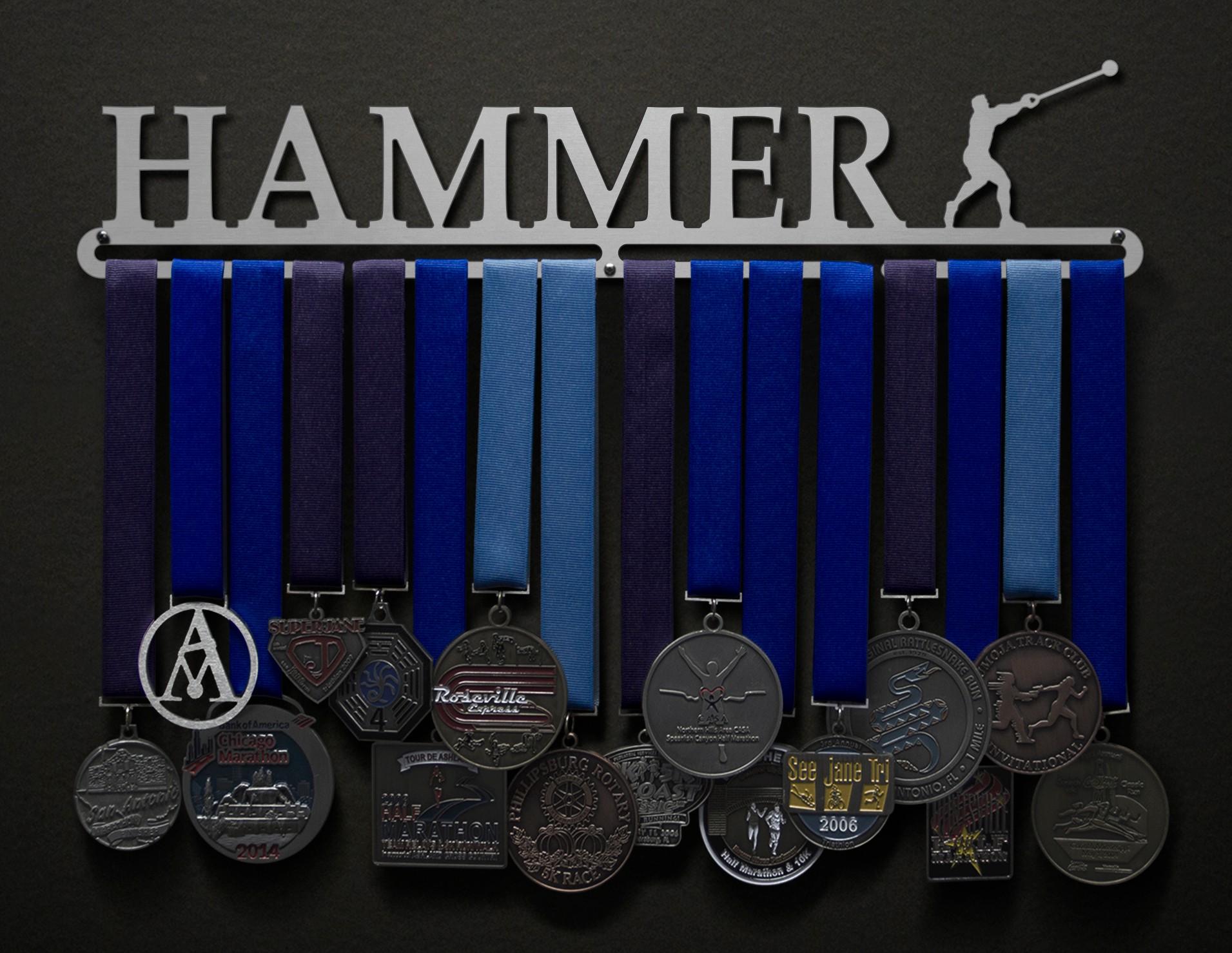 You trained so hard for the medal, just to toss it into a drawer?! Not anymore! Throw some pride on your wall with this Hammer medal hanger!