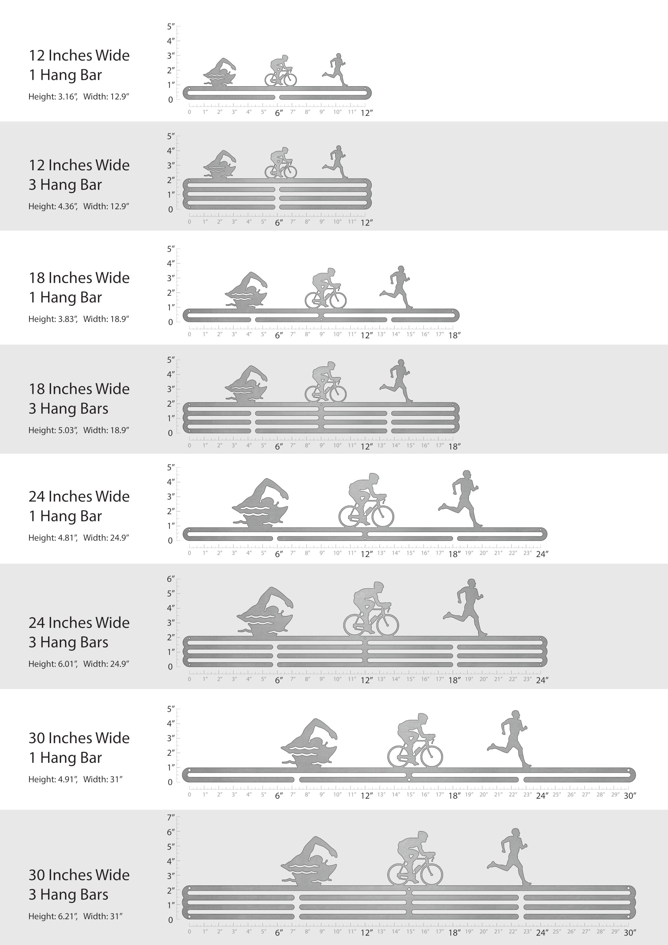 Unsure what size to get? We have created two consistently scaled images to show you what different sized displays look like when filled with medals.