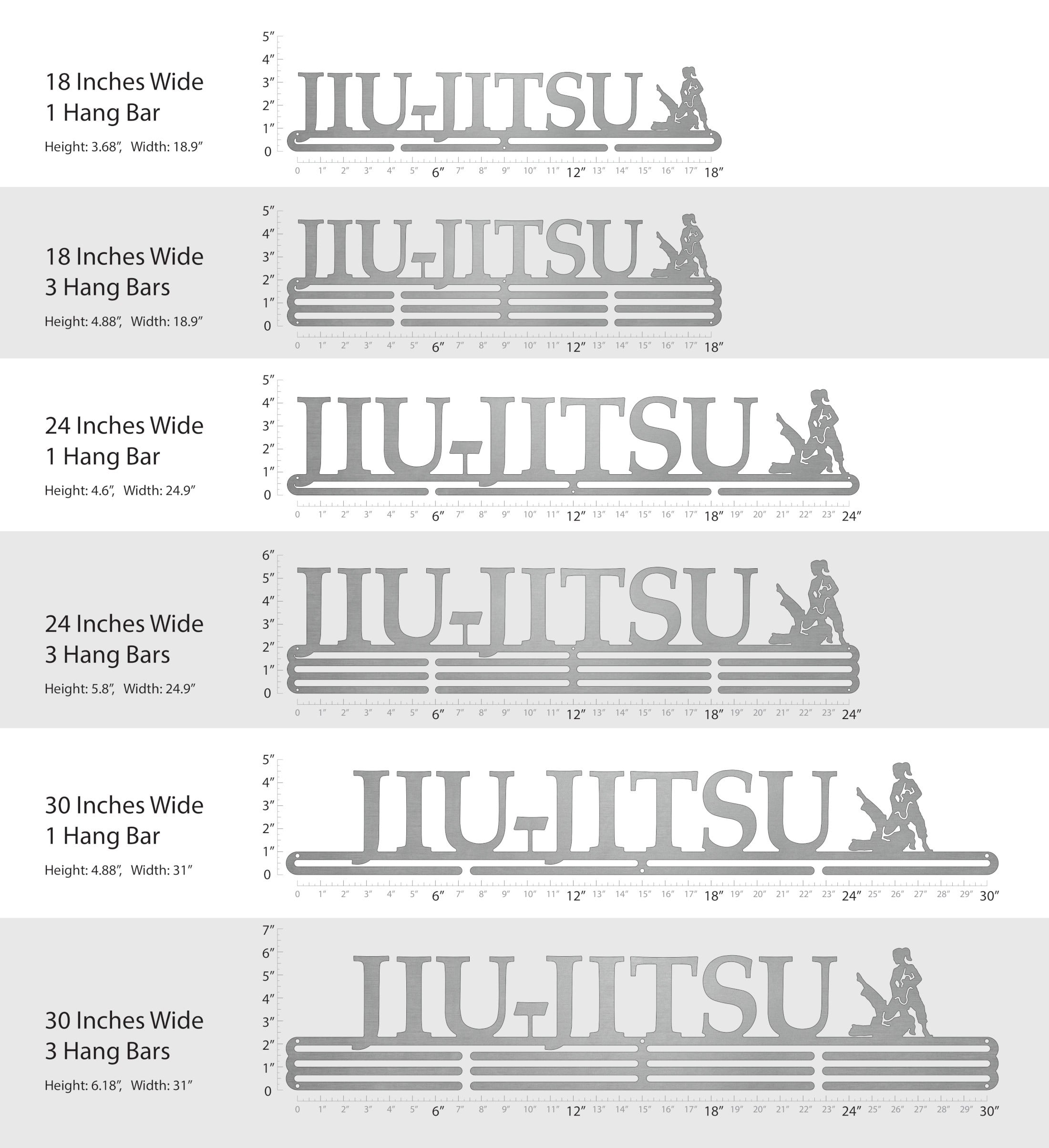 Unsure what size to get? We have created two consistently scaled images to show you what different sized displays look like when filled with medals.