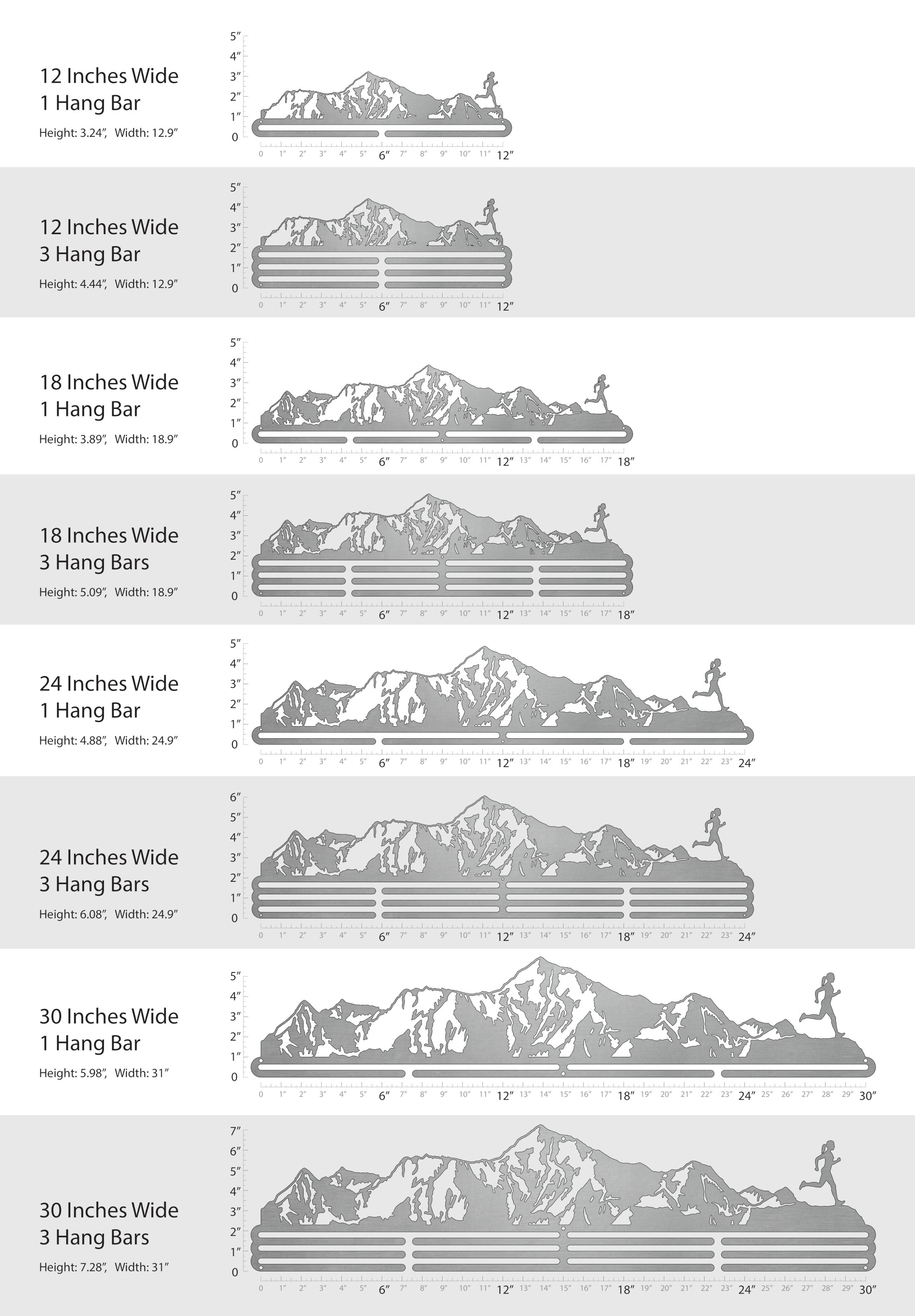 Unsure what size to get? We have created two consistently scaled images to show you what different sized displays look like when filled with medals.