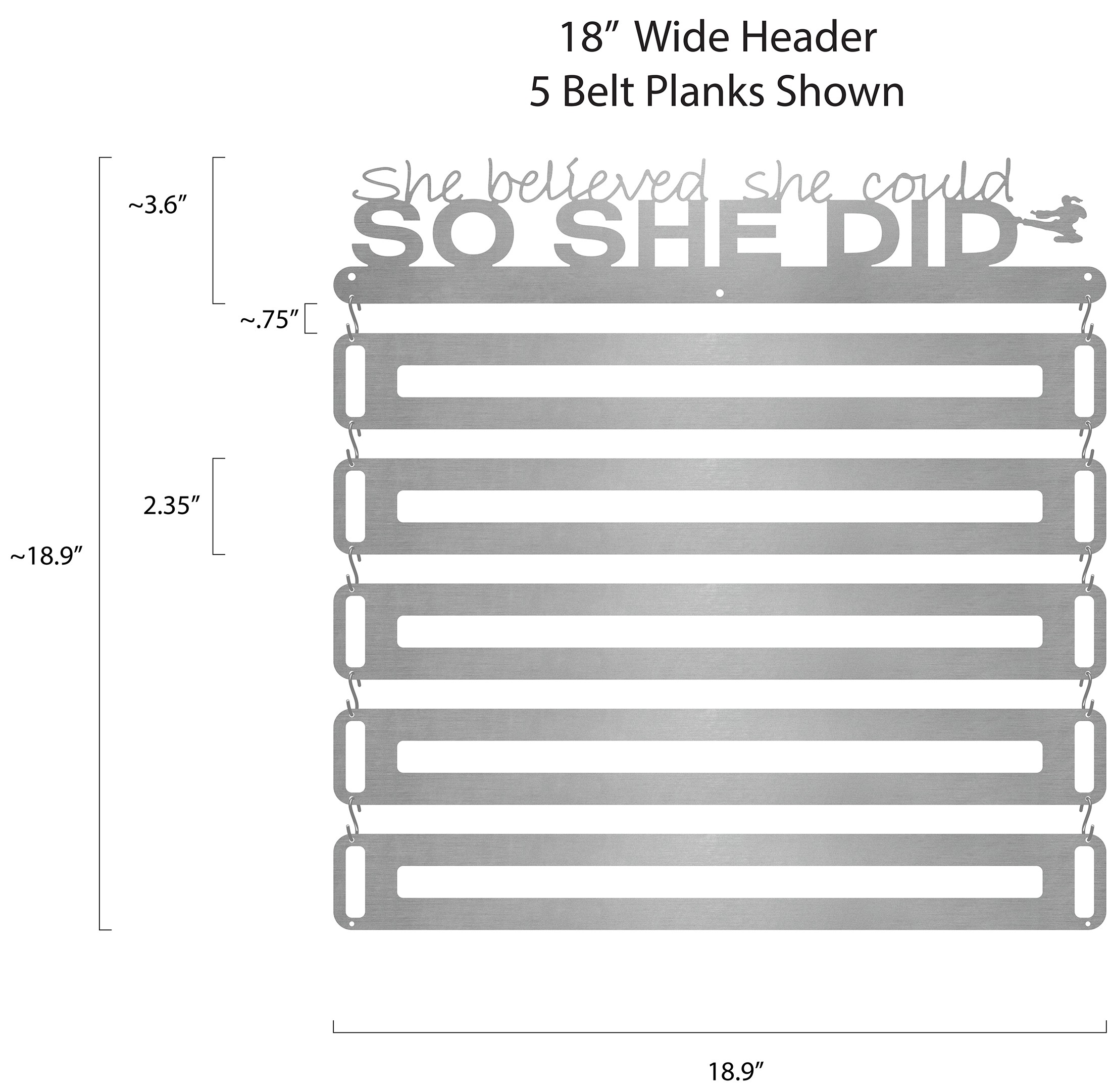 Most Martial Arts belts are 1.5", 1.75", or 2" wide. Just input the width that most closely matches your belt in the "Belt Width" field below.