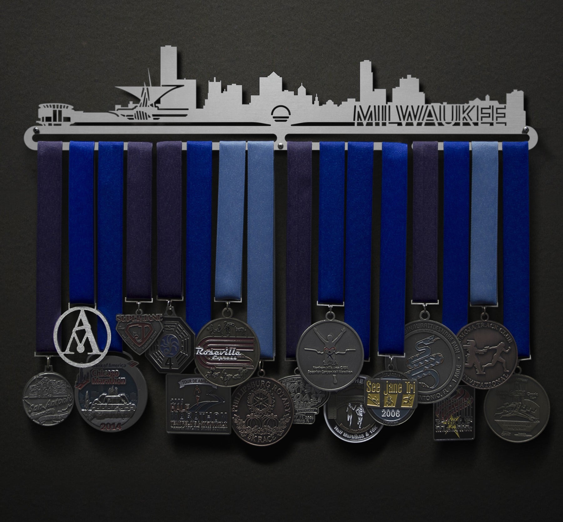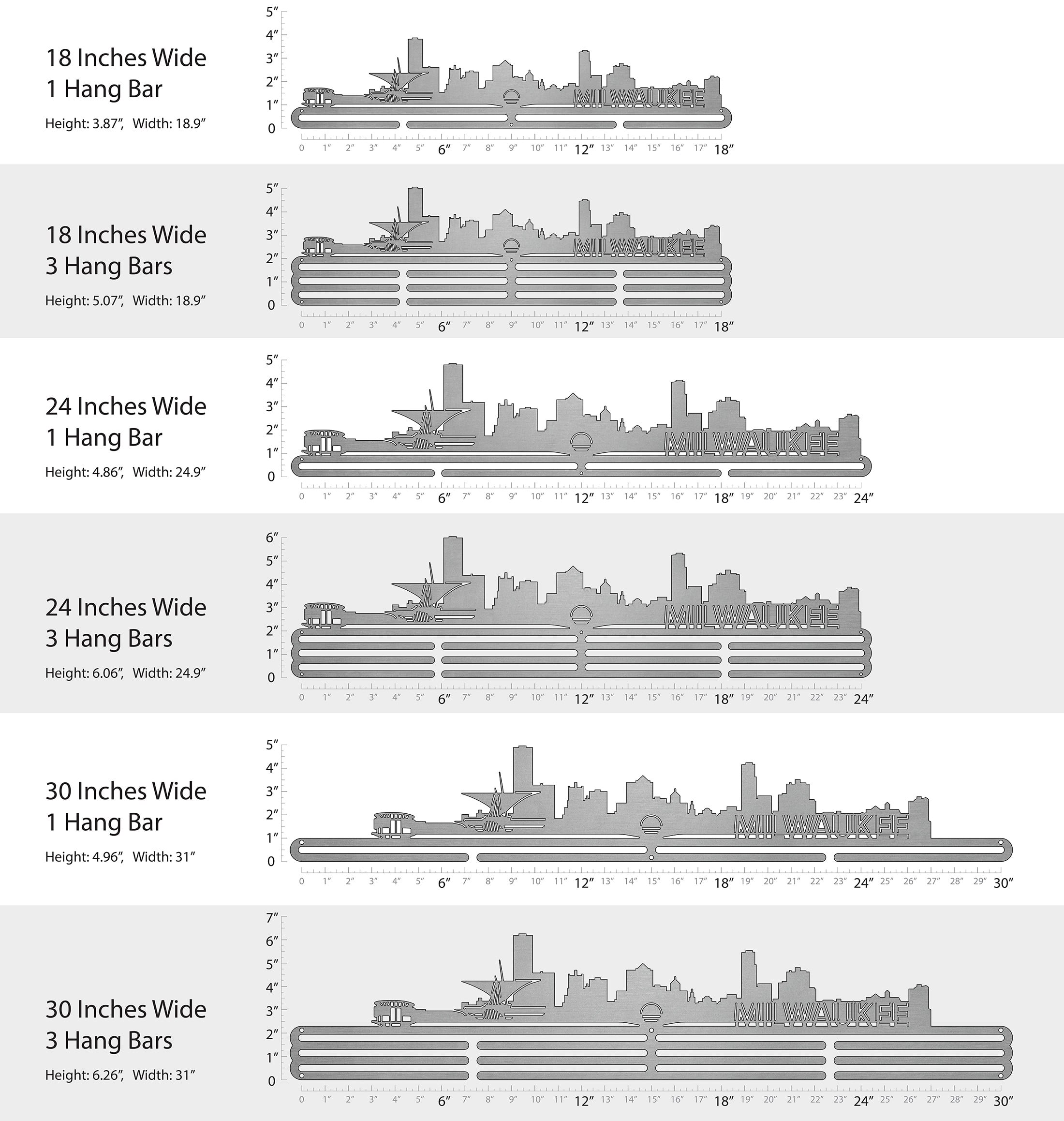 Unsure what size to get? We have created two consistently scaled images to show you what different sized displays look like when filled with medals.
