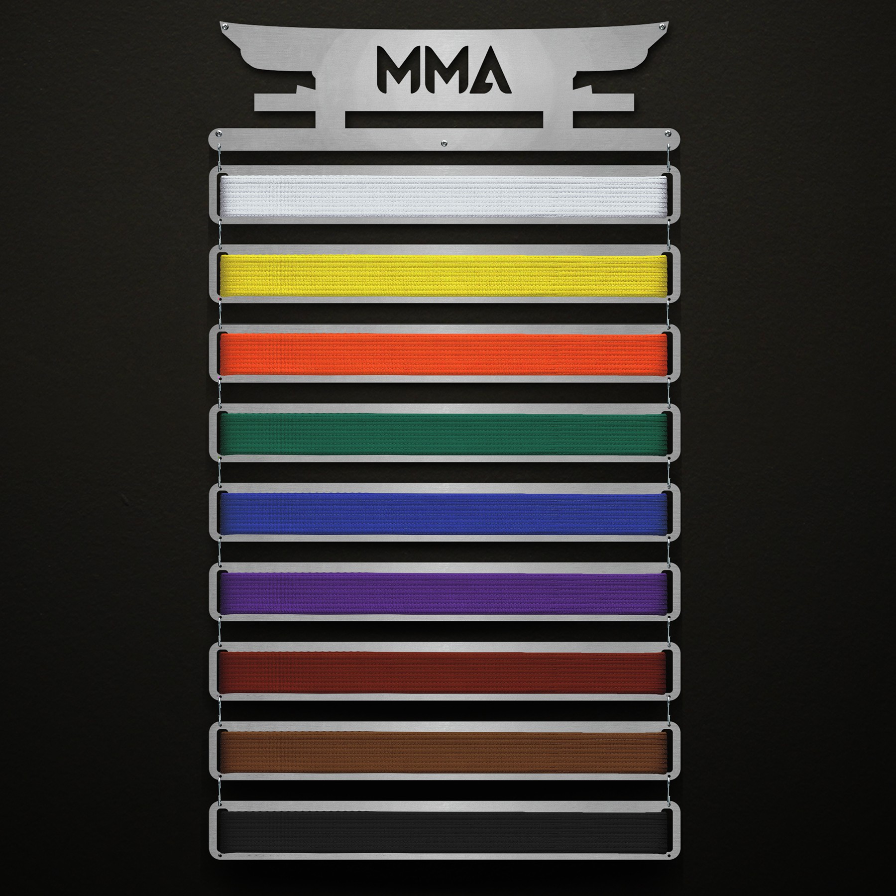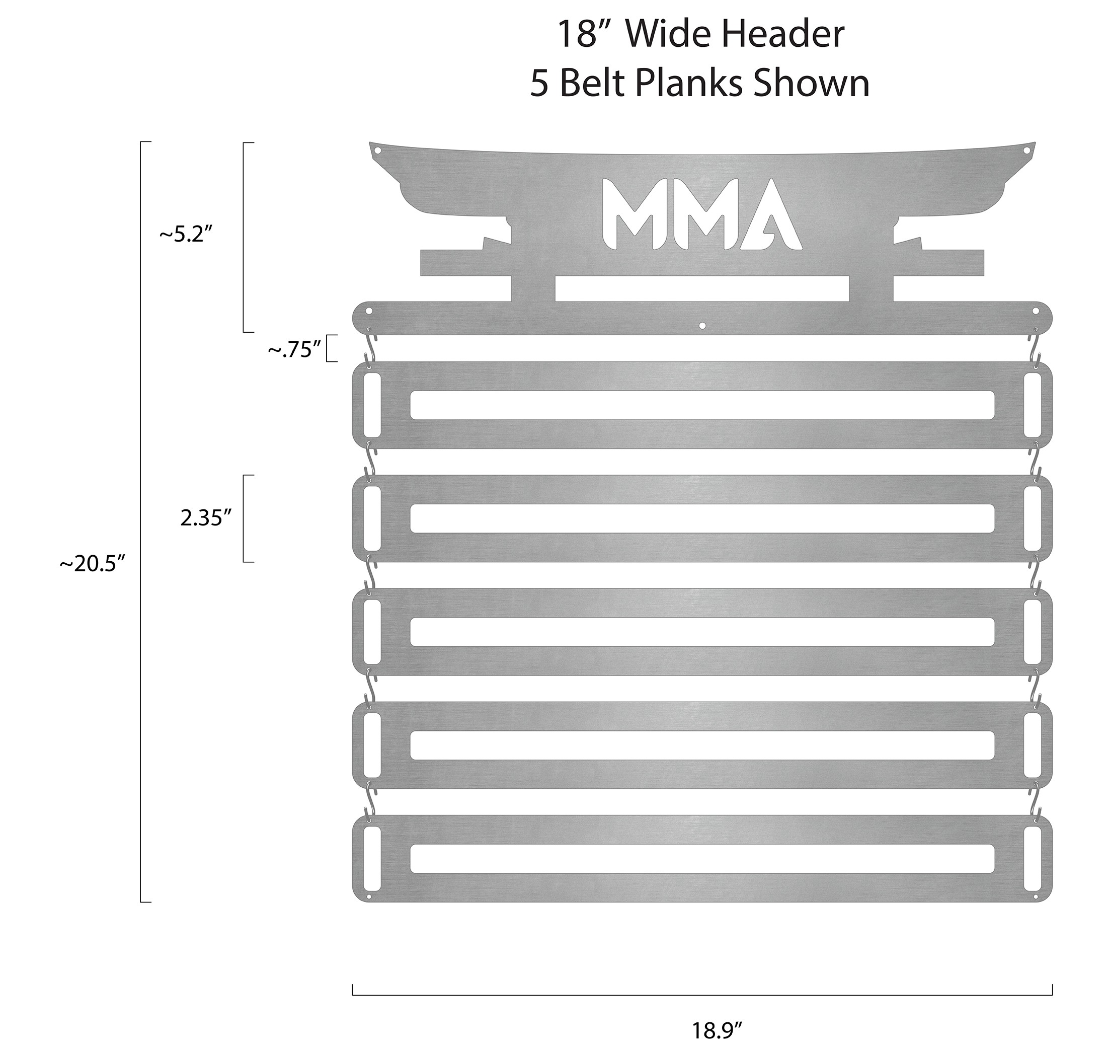 This modular design allows you to add your belts to the display as you earn them without having any blank or unused spaces for future belts. Once you earn a new belt, you just affix it to a new belt plank and hang it from your already-existing belt display!