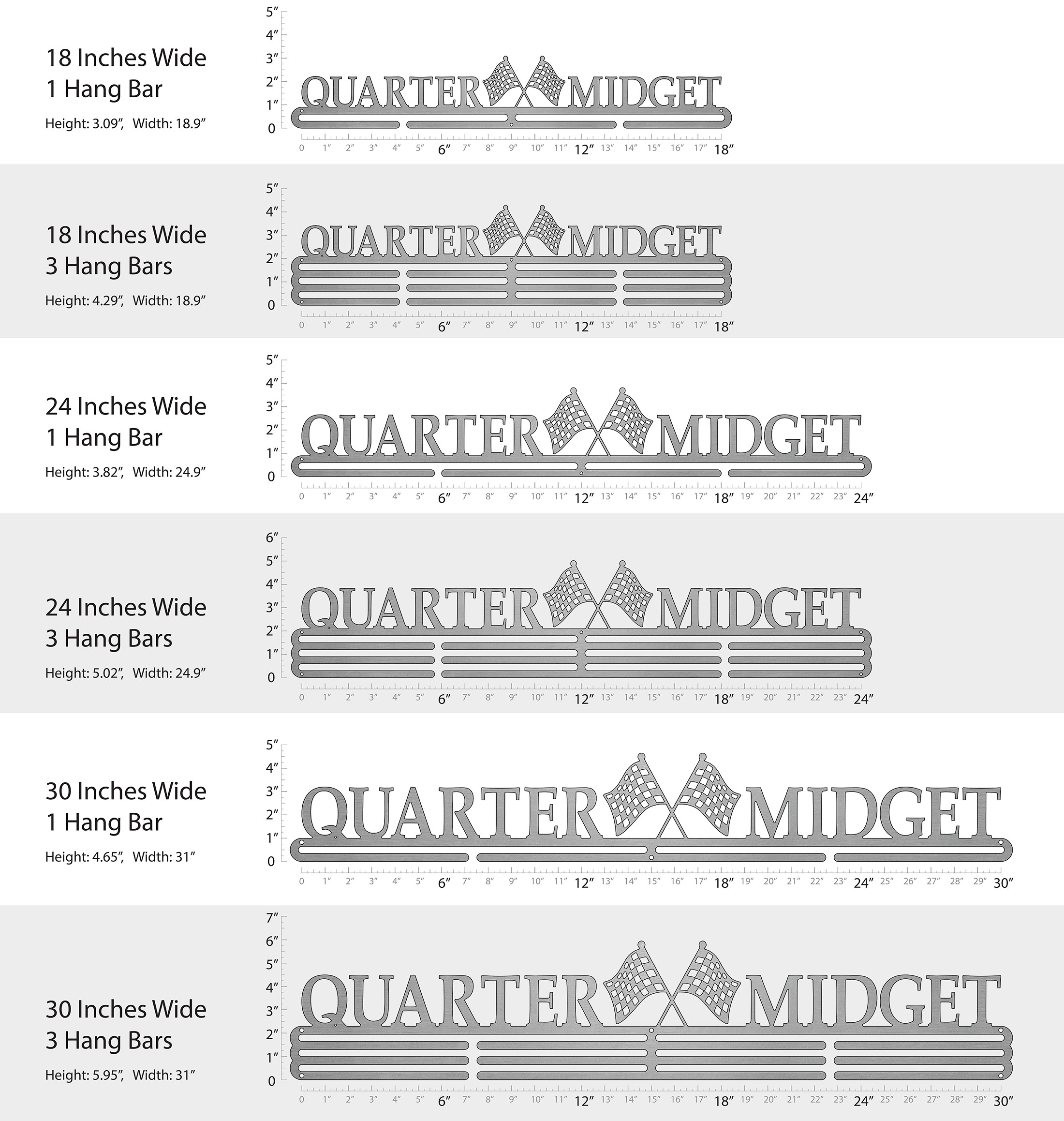 Unsure what size to get? We have created two consistently scaled images to show you what different sized displays look like when filled with medals.