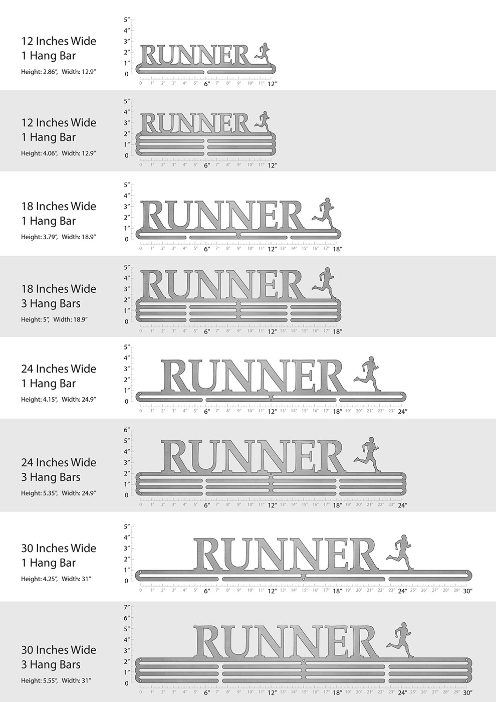 Unsure what size to get? We have created two consistently scaled images to show you what different sized displays look like when filled with medals.