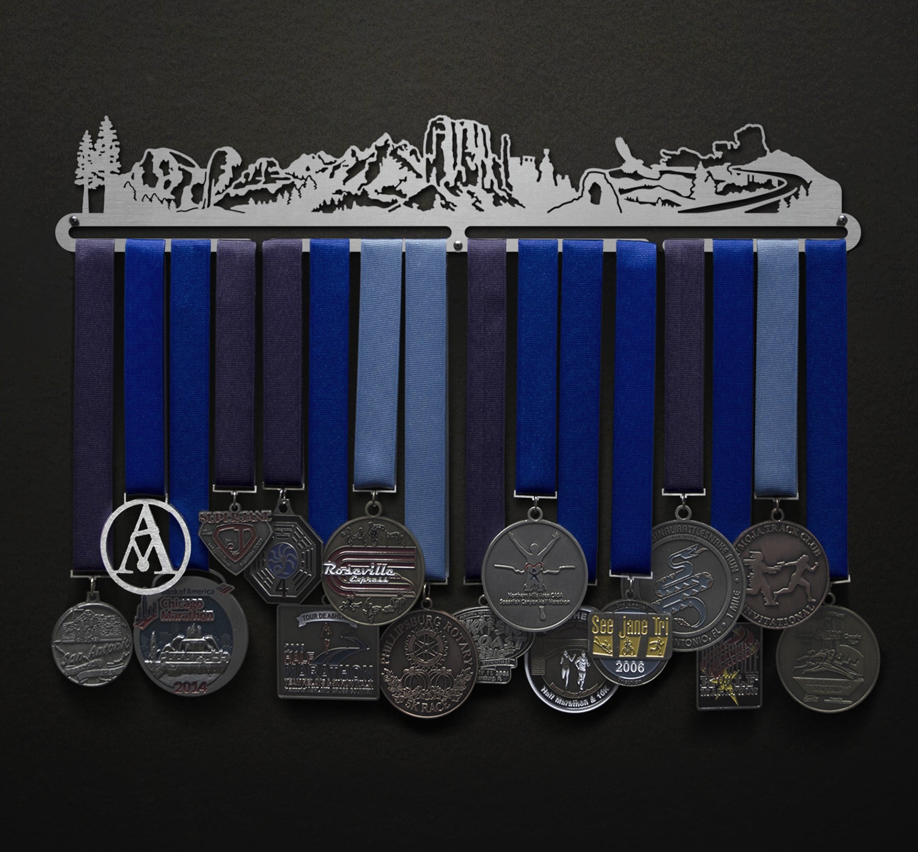 Unsure what size to get? We have created two consistently scaled images to show you what different sized displays look like when filled with medals.